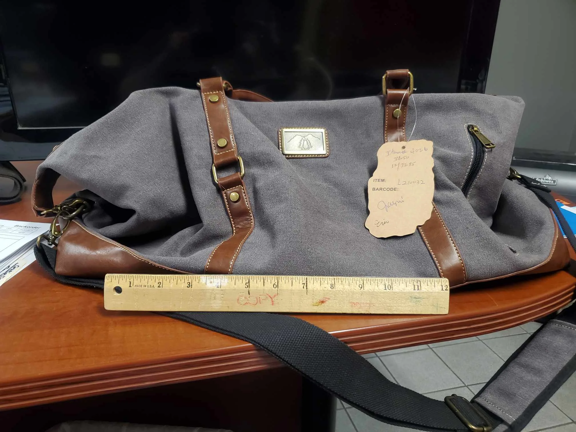 24″ MED GREY CANVAS TRAVEL BAG $51.10 24" MED GREY CANVAS TRAVEL BAG quantity Add to cart SKU: 4026 Category: Prairie Schooner Description Description 24″ MED GREY CANVAS TRAVEL BAG Related products Tag# 3206BK 7.5″ X 8.5″ Leather Shoulder Bag w/cell & Smart Phone Pouch. $20.30 Add to cart GREEN W/ MESH CANVAS BACKPACK $36.40 Add to cart Tag# 3085BK Sports Purse 9×7 $23.10 Add to cart KHAKI CANVAS LAP TOP BAG $30.80 Add to cart
